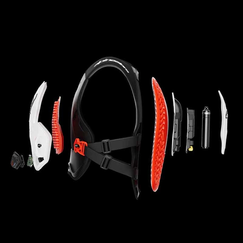 • We advise against wearing a neck brace with any TA system. when deployed, the system stabilizes the head and neck similarly to a brace, limiting flexion, extension, and helmet–collarbone contact, but only when needed, preserving normal movement and visibility otherwise.