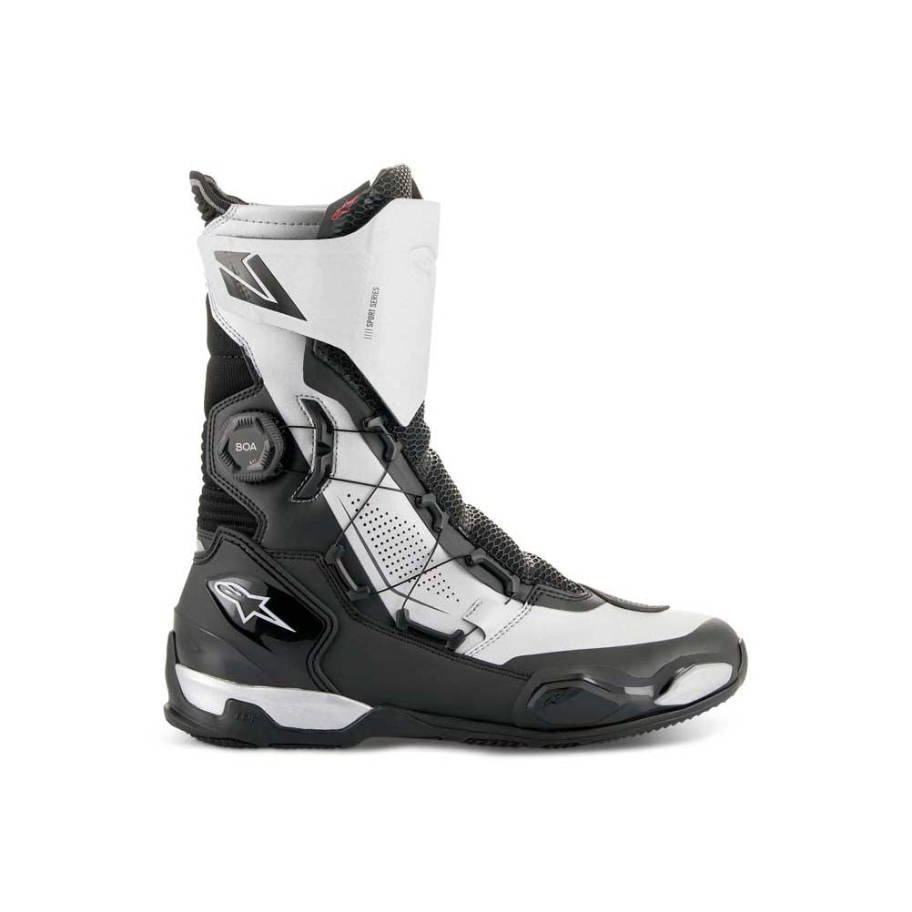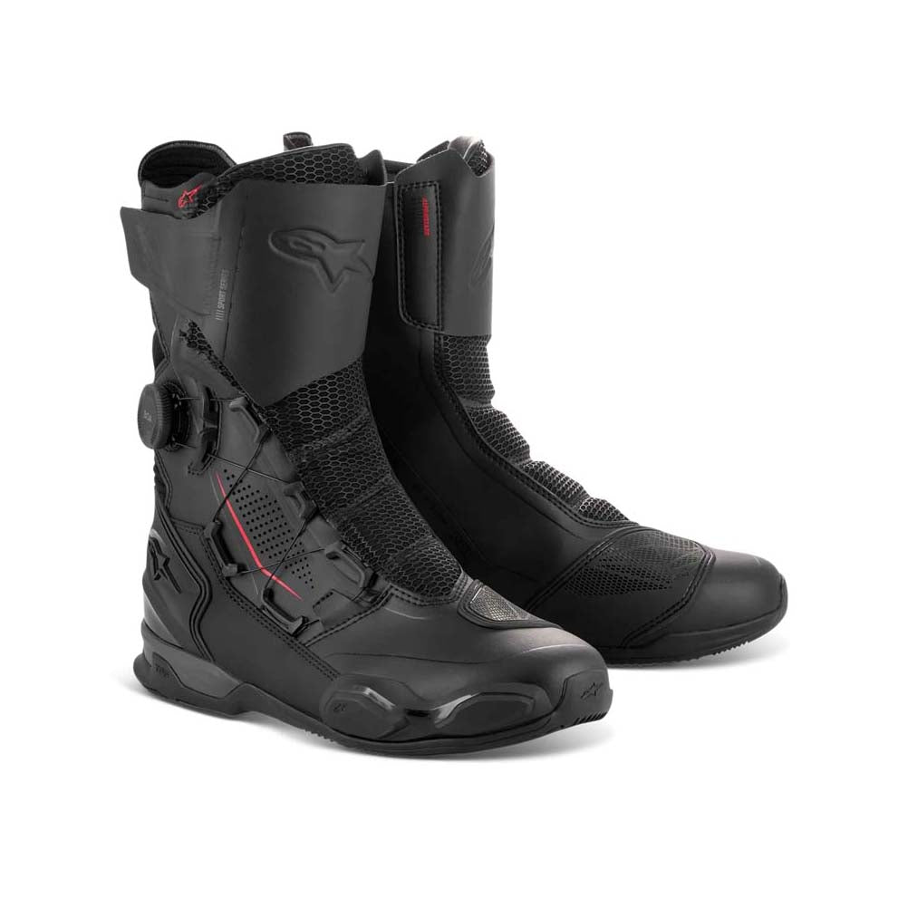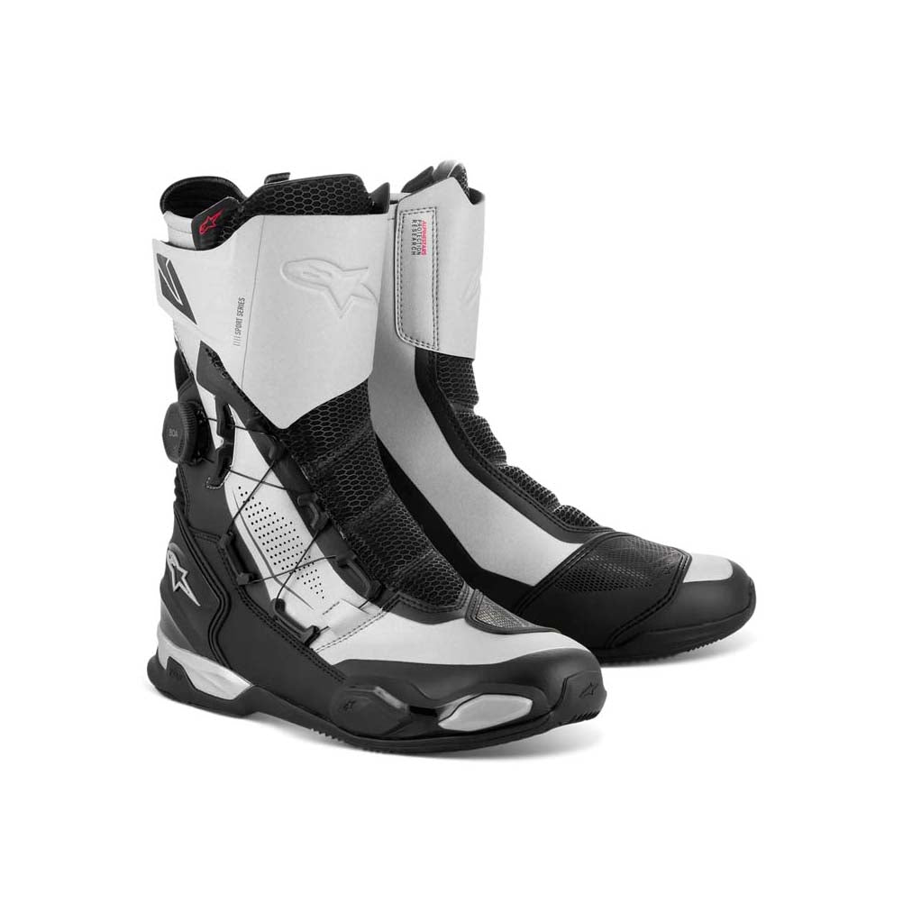 The SP-X BOA Boots are a sleek sport boot designed to fit under tech riding pants and provide superior walking capability. Optimized for the sport and sport touring rider, the SP-X BOA Boots are compact, mid-height boots with premium levels of protection and comfort on and off the bike. The upper is constructed from a combination of advanced microfiber, ultra-soft Rideknit® material and knitted mesh, plus seamless thermo-welded parts. The lower features a TPU heel counter, toe slider, and the Alpinestars TPF Transversal Protection Frame on the sole, allowing for high levels of protection against impacts and any bending or twisting. Additionally, the sole also features an all-new design with an asymmetric back heel to facilitate the rider’s natural stride and promote off-bike stability.